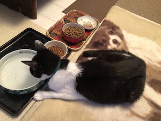 寝そべって水を飲むさんちゃんを見ると痛々しいです。