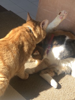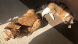 仲良し姉弟なので喧嘩にはならないで、トラが1歩下がって譲ります。