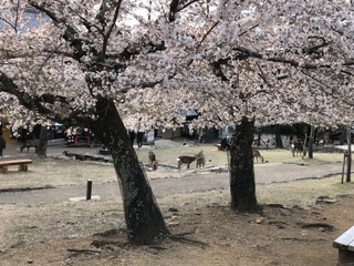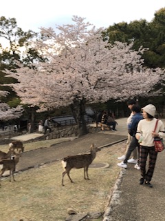 この後、古社寺と櫻がとけ合い鹿が群れ歩く自然公園で160分。