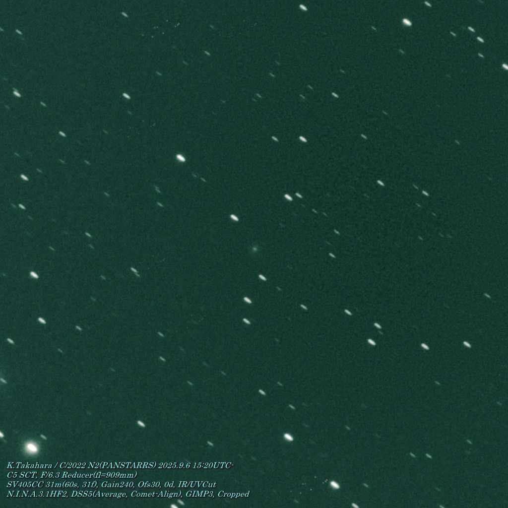 さて、週末。いまいち天候が安定しないんだけど、最近会ってないten.さんを誘って出撃してきました。と言っても、山は雨降りそうだから、干拓へ。まあ、星が見られなくても、友人に会うのは大事よね。というわけで、雲に悩まされながら、撮影しつつ、珈琲をおごちそうになってきました。まずは、C/2022 N2(PANSTARRS)彗星です。次は240P/NEAT彗星。最後はC/2025 A6(Lemmon)彗星。ま、これだけ撮れれば万々歳の天気ではありました。爆。