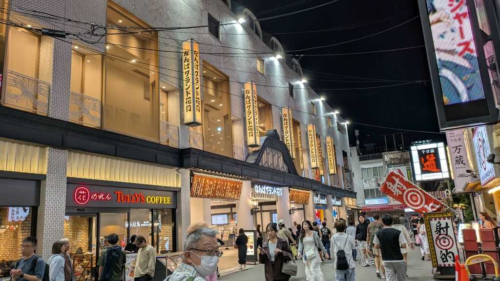 (戻る)日本橋に戻って、ちょっと甘いものが食べたいというので、そのまま黒門市場へ。大判焼きとたこ焼きを買って帰りました。ホテルに戻ってシャワーを浴びてさっぱりして、夕食に出かけるまでゆっくりしていると、奥さんがなんばの高島屋へ行きたいとのこと。なにやら万博のオフィシャルストアがあるらしい。実は、万博の帰りにマーケットプレイスに寄っておみやげを買おうとしたのだけど、ここもすごい行列で、あきらめて帰ってきたのだった。土産もの屋さんに売ってある万博関連グッズでいいんじゃないか、と思ってたんだけど、オフィシャルストアに行くことをあきらめてなかったんだねぇ。笑。もちろん、オーケーして、早めにホテルを出ることにしました。オフィシャルストアは確かにあったんだけど、結構品切れになっていて、目当てのものは見つからなかった模様。とりあえず、夕食に行くお店まで、なんばをテクテク歩きました。こちらはなんばグランド花月。途中、土産もの屋さんに寄って、とりあえずいくつか大阪みやげを見繕いました。万博正式グッズもあったし、一段落です。そのまま、大阪らしい道具屋筋を下っていって、夕食のお店をめざします。今日の夕飯は牛かつにしました。おなかが空いていたので、つい追加のカツも注文してしまったのですが、目の前に来たら、さすがに頼みすぎた、と思いました。。。ごはんのお代わりもせずに、なんとか完食して(嫁さんに二切れ食べてもらいましたが)店を後にしました。少し前ならペロリと食べたんですがねぇ。さすがに今はこの量はちょっと厳しいです。笑。(三日目へ続く:万博ではありません)(一日目に戻る)