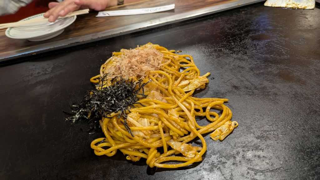 (戻る)夢洲を後にして、難波まで戻りました。大阪メトロの中央線から御堂筋線の乗り継ぎは結構遠かった。一駅分は歩いた感じ。ディズニーランドへいくときの東京駅での乗り換えを思い出しました。今日の夕飯は、大阪らしく、ぼてぢゅう本店。焼きそばとお好み焼きをいただきました。写真は焼きそばのみ。お好み焼きはすぐに食べてしまった。笑。とってもおいしかったです。お腹もふくれたことだし、奥さんが行きたいと言っていた、戎橋(えびすばし)へ。言うまでもなく、グリコ。2006年のときはワールドカップ仕様だったから、純粋な(?)グリコユニフォームははじめて観ました。この後は道頓堀を散策しながら、ホテルのある日本橋へと向かいました。まずは、かに道楽。さすがに食べてません。看板だけ。カールおじさん。これは初見。関東だとカール売ってないんだよね?おいしいのに~。2006年にテニアンの金環日食へ行ったときは、店の前に食い倒れ太郎がいたんだけど、今は看板になってて大きくなってました。隔世の感があるなぁ。ビリケン。一日めはこんな感じでした。なかなか疲れたわ。明日は朝から万博に行きます。(二日目へ)(一日目の最初に戻る)