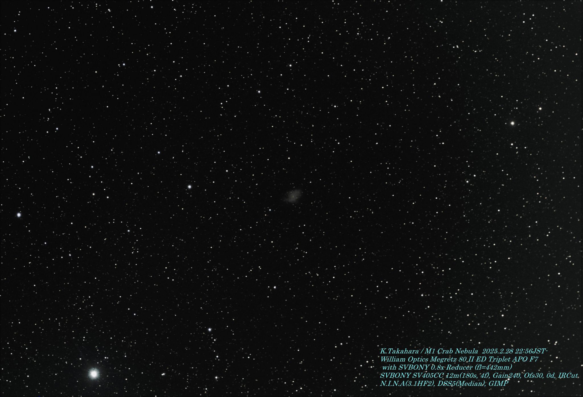 次はM1 かに星雲(Crab Nebula)です。おうし座にあります。さすがに80EDだと小さいのですが...