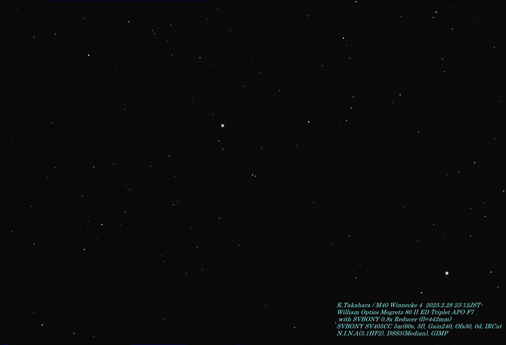次はM40。メシエ天体としてはめずらしい二重星です。・・・なので、これまた小さい。笑。