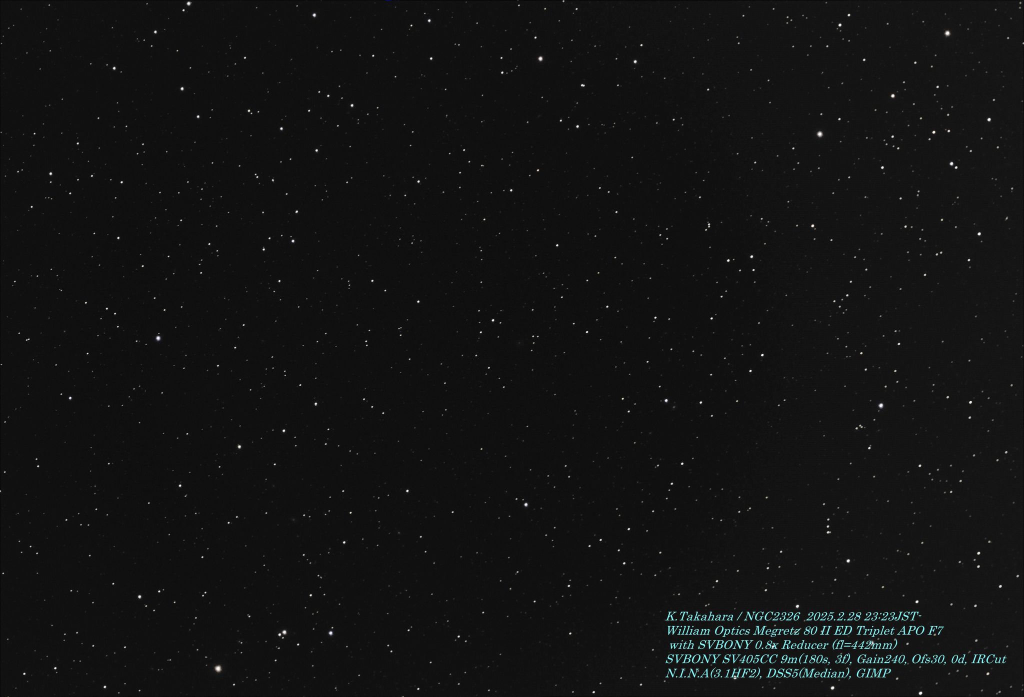 まずはヒアデス星団。おうし座にある散開星団ですね。メシエカタログにもNGCカタログにも載っていない不思議な分類の散開星団です。もともと双眼鏡で見るぐらい大きいので、80EDを出したときに撮っておこう、と思って撮りました。写野に入り切れていませんが、まあ記録ということで。眼視だとSWAN40mm、16xで結構見ごたえがあるんですけどねぇ...