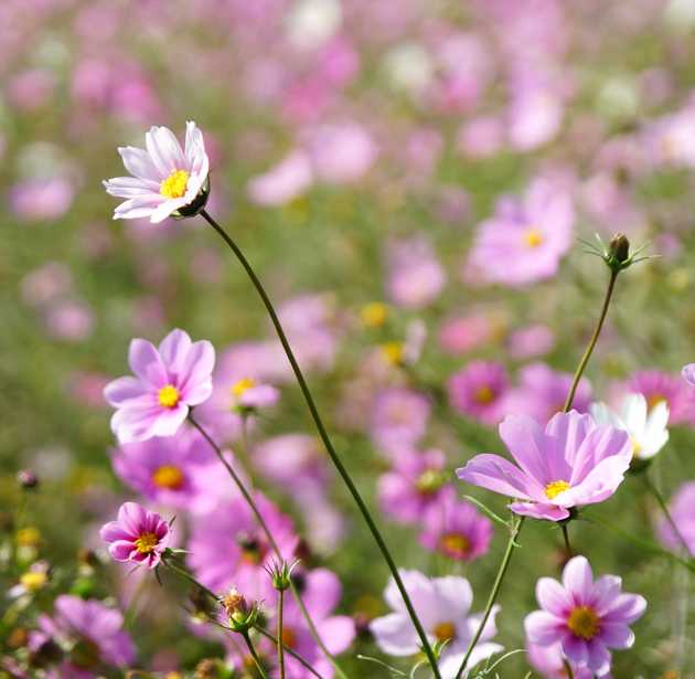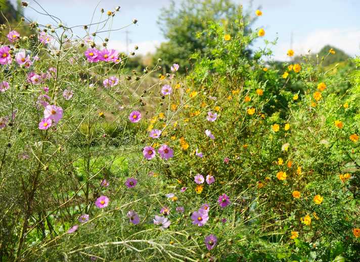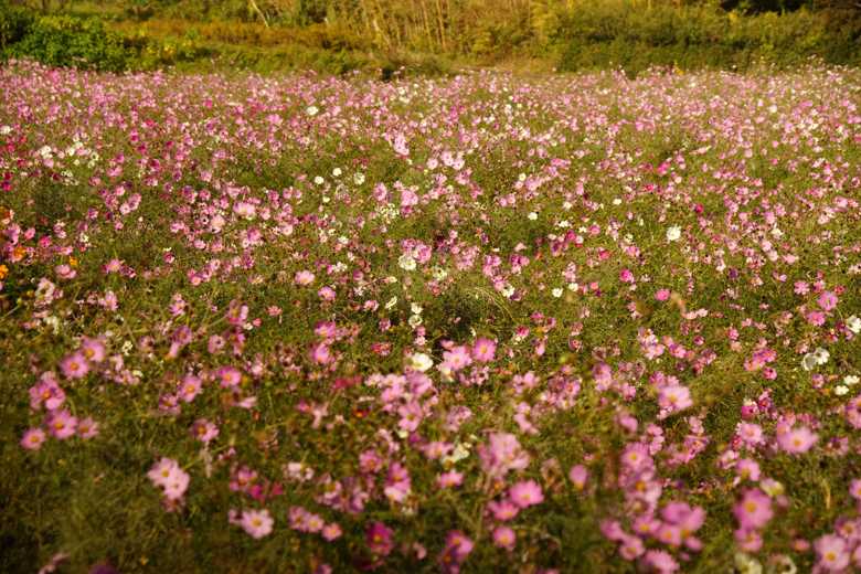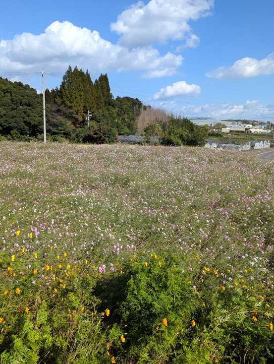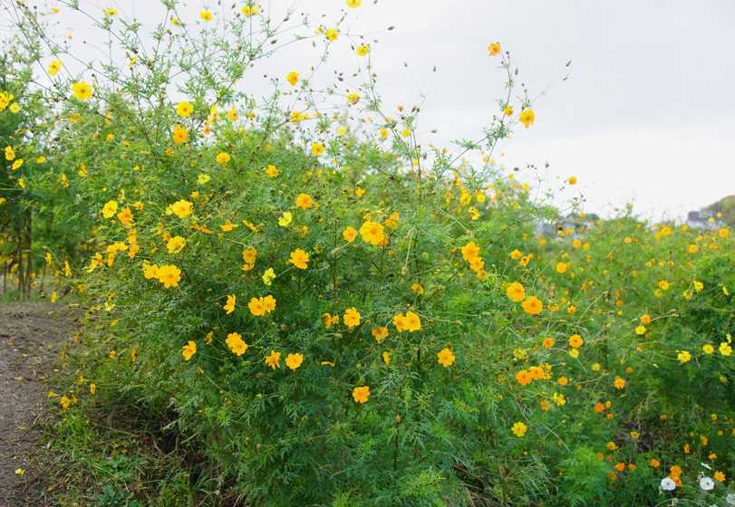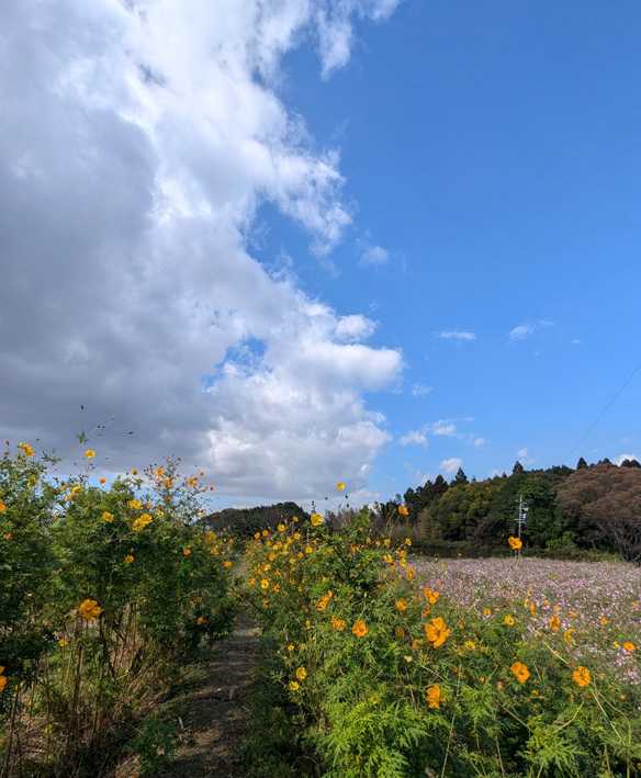 キグナスコスモスの小径 奥にコスモス とても良い天気でした