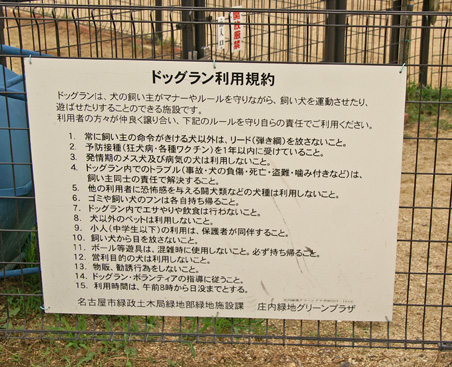 おはよう御座います今日の名古屋曇りの予報ですが 太陽が輝いて暑いです 日中温度は36度 もう真夏ですね昨日は名古屋市教育委員会主催の歴史講座(もう7年続いています)に参加してきました先日ドッグランを2年ぶり位に 覗きました愛犬家が自慢の家族を 紹介してるようでした利用規約名古屋市内で 初めて開設されて ここが順調に運営されましたので 市内各地に増えつつあります出入り口二重に扉が設置されています 急な大型犬の脱走がありますと 危険と ランが2か所に仕切られています利用形態は特にないようですが 元気な犬 大人しい犬と自然になっているのでしょうか愛犬に囲まれてこの家族一家なのか 愛犬が仲良くなった犬なのか判りませんが とても懐いており 微笑ましい光景でした 奥様も幸せな顔でした得意ポーズ犬の種類は判らないトンカツですが 利発そうな犬が飼い主に見せるのか 周りに披露してるのか 判りませんがこの容姿 自慢してるように 思えました可愛い白い小型犬に囲まれて メルヘンンの世界を想像しました 犬たちもこのような温かい視線を受けて 愉しんでいました僕恐い2歳児位の子供さんが 小形犬ですが チョット怖いのか 木にしがみつくようなポーズ後1年もしますと 犬たちとジャレアウ間になるのでしょう