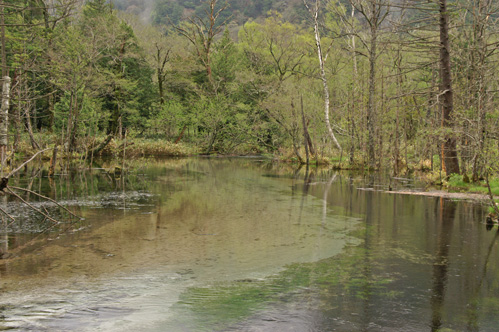 おはよう御座います100%雨と思い 今日の予定からして ユックリ起きましたら 快晴 ビックリしてカメラを持ち出して出かけたい と急遽変更 でも予定は10時から入ってる焦りますね上高地の状況をアップ致します桂川新緑に映える桂川周辺 湿原を歩いたり 川に出たりと 変化に富んだ道でした目に焼き付けておきたい 場面の連続でしたオシドリ桂川には鳥類 魚類が少ない感じを受けました足を止めて 新緑の中を満悦していましたらオシドリつがいが 優雅に泳いでいましたかなり遠方でしたので ポイントは絞れませんでした珍しいかなトンカツは名前は全然知らない 幼稚園年中組程度 同行の植物の達人に教えてもらいましたが 100%忘却でした古木百年 千年単位でのサイクルの植物界 古木の珍しい形は 至る所に存在 ファインダーから覗きますと 心が踊りますね何だろう桂川に浮いてるような 丸いボールの形何かわかりませんが シダに覆われた状態でも増水もあるでしょうから 木に根付いてるのかなとも 思いました明神橋河童橋から3km位上流にあります橋一般の方はここで両岸を往来するのです雨が降ったり 止んだりの状況で 霧に霞んだ上流地域 想像できるので愉しみました墨絵の世界ですね