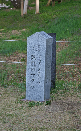 おはようございます今日の名古屋は晴れ渡り 気持ち良い朝です日中温度も25度予報となっています昨日は積もっていました 整理を中心に動いていました先日 高山市一宮の 臥龍桜を観桜 アップいたします石碑大幢寺(曹洞宗)の境内にあり、1989年(平成元年)に周辺が臥龍公園として整備されました 大幢寺(だいどうじ)の大桜と呼ばれていましたが寺の和尚(道仙)により1931年(昭和6年)に臥龍桜と名付けられました全容JR駅の横にあり 便利です トンカツは朝の桜が撮りたくて 前日22時に出発 2時に着きました大きいですね エドヒガンサクラ 高さ 20m 枝梁 30m 幹回り 7.3mと 大きいです痛々しいこのように老木ですから 幹が痛んでいるところもあり 地元の方々の 愛情込めた見守りで花をつけています1100歳を越える老樹と言われています支えて枝も張っており かなりの負担になり 折れる可能性が大多くの支え木で 守られています1973年(昭和48年)に国の天然記念物に指定されました枝が枝の重みで 地面すれすれに それを支えていましたが枯れてしまった 痕跡です2本に見えますが伊勢湾台風で 瀕死の重傷となり 枝が地面にその後根を出して このようになったと聞きました実質は2本のように 見えますが朝日が登ってきました 東の空に 歓声が上がると思いましても 数人のカメラマン のみ黙々とシャッターを切るのみでした 撮影には誰にも邪魔にされず 自由に移動が出来ました朝日を受けて1100年の威容を誇る 臥龍桜自信に満ちた姿 感動しました満開の時初めて 見ることが出来ました今年 2回目の訪問でした 感動一杯で次の 花を観賞に 出かけました