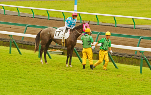 おはようございます今日の名古屋 晴れていますが 予報では曇りから小雨に 最高温度も 29度となっています昨日は 羽島市の 向日葵をカメラもって出かけました少し早かったです その後寺院を参拝し 帰宅は15時夕方には 自然大学の仲間 10人位で 名古屋中心部の旧ランの館で バーベギューをしながら 飲み 食べ談笑 楽しかったです今日は先日初めて行きました 中京競馬場へ目的は疾走馬の 流し撮りでした 珍しい光景に合いましたので アップいたします疾走中止レースで走る12頭の馬 しかし遅れて歩いてくる一頭係員に惹かれてきました引かれて足を痛めている様子 ユックリと 間もなくトラックが 芝コースに入ってきましたトラックを見て馬の運搬用を 見た馬 何を感ずいたのか止まってしまいました一緒に行きました 仲間の人から このような光景を見たことがあり 獣医がかきつけて その場で薬殺 であったと それを感づいたのかな と思いました中を見て一瞬立ち止まって 中をみた 馬動かなくなりました 何時もの運搬用のトラックと 雰囲気が違ったのでしょうね凄い抵抗引かれてはいましたが 足の痛さを忘れての抵抗でした 痛々しさを 感じましたベルトで係員の方々 トラックから ベルトを持ち出して尻の方から 追い込みの形に慣れて見えますね乗り込みやっと車に乗りました 固定されました観念したのでしょうねドアーを閉めてやっと入り込み 固定しましたら 直ぐにドアーを 締めかけました どのような怪我か知りませんが トレーニングセンターで養生をしまして 再び JRAでの疾走を 見れたらと思いました