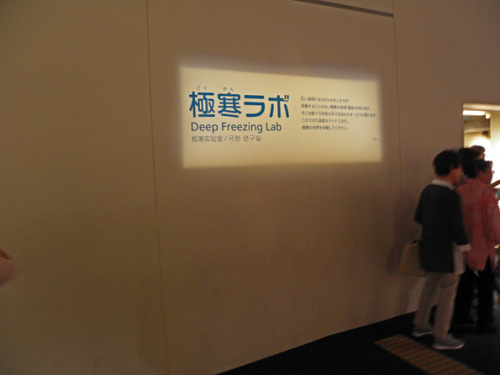 おはようございます今日の名古屋は晴れ渡り 汗が滲んでいます最高温度も33度の見込みです昨日は 病院2か所 午前と午後で その間に書道展 写真展を 見て回りました今日は先日体験しました 極寒の世界をアップいたします極寒ラボ名古屋市立科学館内にありますマイナス30度を 5分間体験するのです案内ルート部屋に入りますと ルート表示がされていました一挙に -30度には 入らないのです長靴夏場ですから サンダル を含めて足の露出がある方は 履き替えるのです短時間ですから 凍傷にはならないでしょうが皮膚に 変化が出る予防です恰好防寒具は大小準備されていましたかなりの厚てでした 全員がこのような状態で着服 致しましたオーロラ勿論本物ではありません 映像ですが この部屋に5分いるのです パネルも多々ありました温度計大きなものが 吊り下げてありました丁度 マイナス30度を 示していました5分滞在して 出ましたら カメラはレンズが凍り付いており 少しの間は 撮れませんでした尚一眼レフで 結露が器内おこると 故障の原因が心配です