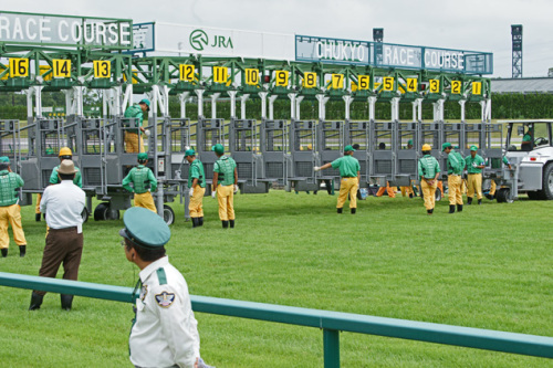 おはようございます今日の名古屋は晴れており 最高温度は36度と今夏最高になる見込みです これから 月末にかけて35度以上になるのかなと 思いました昨日は一宮市の七夕祭りを 鑑賞してきました人は出ていましたが やはりアーケードを一部取り壊し雰囲気が変わってしまいましたその後病院へ 受診後 名古屋朝顔展へ 16時でした現地に行きまして 気が付きました朝顔は午前中ですね 大失敗でしたその後 能楽堂で開催の チェコ演奏家&歌手の音楽を観賞しました今日は中京競馬場の最終をアップいたしますゲート準備疾走する頭数により 2台を連結します12頭では 1台です ダート 芝も同じです馬が入る中々入らない馬も いますね 騎手と係員が 最後は無理やり 入れていました一斉に最後の馬が入り 係員が退避しますと 直ぐにゲート開閉スイッチが押されて 一斉にスタートしていきました引き揚げゲートが引かれて 移動していきます 芝部分が重量で 圧縮されて 凹みますその部分を 大勢の係員により修復されます作業完了次の疾走までに 30分しかありません手際よい作業で 終了と同時に退避していきましたこの様に芝は特に馬にとりまして 脚がとられやすいのですこの様に 綺麗に即座に修復され 安全に走れる馬場になっておりますマダマダ 競馬場色々とあるでしょうが 終わります