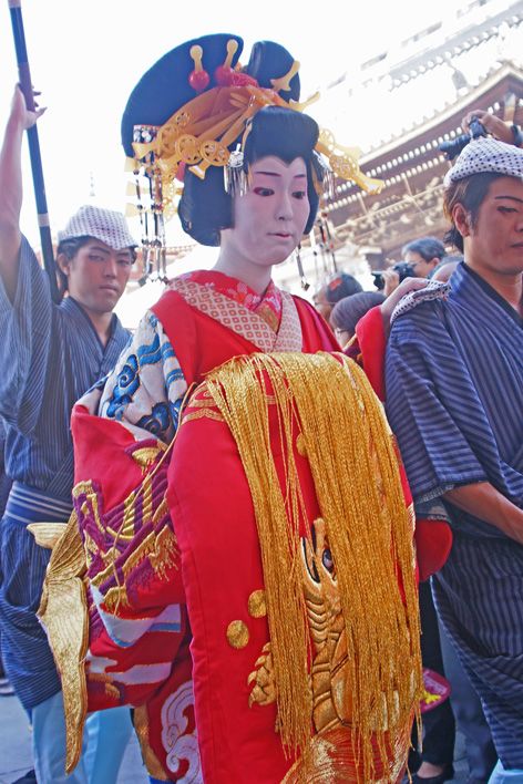 おはようございます今日の名古屋は晴れています 27度~17度見込み昨日は午前中趣味の会 午後からは懐かしい映画幌馬車を 鑑賞しました今日は先日開催されました 大須観音を中心とした大道芸祭りの 一つをアップ致しますスタート 大須観音の境内を スタートした時の表情です その後 日に3度 道中が開催されましたユックリと 静かな行列です 花魁は一般募集です 結構衣装も重いと思います歩き 高下駄を横に向けていますね この様にして進んできました足の部分 高い下駄を 素足で履いていました 足も化粧されていました 重そうです 慣れないと 捻挫を起こしてしまいます次の 衣装の異なった色で 二番目の花魁が 続いてきました横顔 笑顔一つなく 静かに歩く との表現がピッタリ 江戸時代は どのようだったかなと 思いました