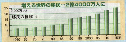 おはようございます今日の名古屋は今は曇っていますが 雨の予報です20度~14度と最高温度がもう直ぐ20度を切りそうです昨日は会社OB会が 名鉄グランドホテルで開催懐かしい顔 20年振りに再開した方も見えました今日は先日地元紙 中日新聞に掲載されました移民政策をアップ致します推移 遂に2億5千万人を 突破しました 日本人口 の倍ですね離脱 このような見出しに ビックリしました EU離脱の一つの要因だったとは人口減少 先進国は人口減少に悩み 移民政策でカバーを 計画し 実行しています 日本も1億2千万にを 切る状態 50年後には8千万人の見込み どのような 施策となるのでしょう永住権 単身での受け入れから家族を呼び寄せて 永住権を付与する 不法移民の防止策の 面もあるのでしょう上位国 移民国家アメリカ 断トツですね 日本は28位となっております日本の実態 国際貢献目的で研修・技能実習生として 受け入れてきました 現実には中小企業の 3K職場の 人て不足対策 実習生の出身国 中国・ベトナムが多いですね ILO 2014の議定書 不当な取り扱い 詐欺行為からの保護を批准を求めています 日本は未批准です違反7割 技能習得会社に 労働基準監督署が指導 した事業数 7割が指導 酷すぎますね内容 最低の賃金不払い企業が1割もある現状 経営者のモラル以前の問題です 実習生を 奴隷みたいな感覚何でしょうか