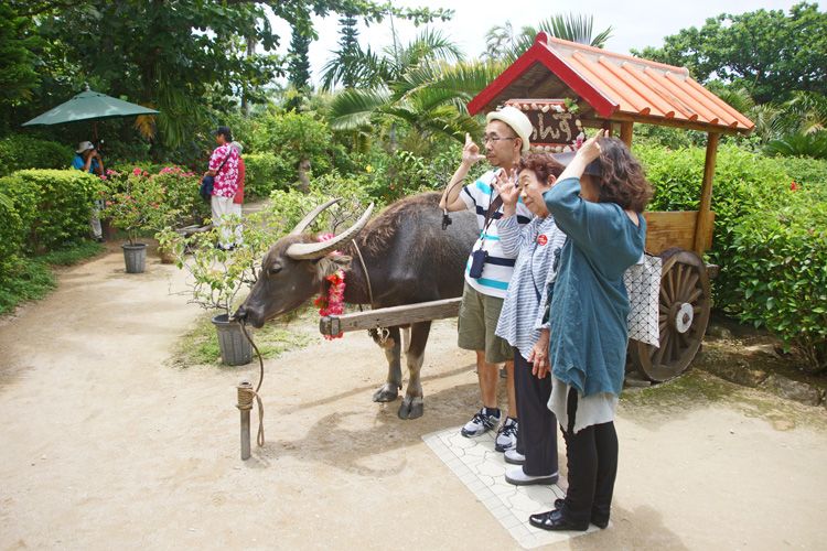 おはようございます今日の名古屋晴れております39度の予報となっています昨日は炎天下 木曽三川近くの 蓮4か所撮りに 30分位で車に戻って体を冷やして 熱中症を意識していました今日は石垣島旅行記 由布島往復の 水牛車を アップ致します観光バス 仲間川クルーズ 終わり 港には観光バス が並んでいました この場所は旧港です 船はここで 島内観光客を下ろして 西表島港に 向かいました島案内図 西表島の マップが作られていました この島は 山並みがあり 平地が少ないのです待っています バスが着きました イヨイヨ 待望の水牛牛に 載ることができます 長年行きたい 載ってみたい の願望が 実現するのです対岸 由布島は 遠浅で ノロノロした歩 で15分です 対岸の状況を 望遠で撮ってみました載りました 長年待ちに待った 瞬間 歩きだしました ノソリノソリと 水牛は30年位 生き 20年位 この仕事を すると 話が ありましたすれ違い このような恰好で トンカツの載ってる車も 同じでしょう 優雅ですね この辺が一番深いかも着きました 15分の遊覧は 短いですね 帰りの方を載せるのです出発 この様に帰りの水牛車が 出ていく瞬間です