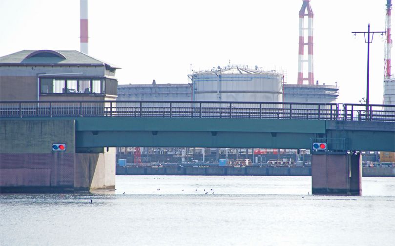おはようございます今日の名古屋は晴れています 最高温度8度見込です昨日は午前 ジムへ 午後から趣味の会 世話人会でした四日市市の一般道にかかる 橋 とても珍しい 構造ですので アップいたします信号 末広橋で 開閉式の鉄橋を 撮っていまして 次に架かってる橋を見ましたら 信号が ついてみました 何故かと思い尋ねました 好奇心です欄干 このように 鉄道踏切の警報器似が 付いていました この先に 先程の機関車の通過する 鉄路用かなと 思いました管理棟? 欄干の反対側に このような建物がありました ノックして 仕事内容を尋ねました 男性二人が 勤務して見えました この橋が船が通る都度 開閉すると説明が 通過する船は 不定期で 通過しない日も結構 ありますよとつなぎ目 この部分が 開閉するのです開いた状態 このように一般踏切と同じく 遮断機の竿が おろされて 通行車両が 停車します開き始め このように 持ち上がります反対側から 小さい船が見えます 連絡がありますと 準備して 上がります そして昨日アップしました 末広橋梁に続きます 1932年(昭和7年)初代橋 完成 1963年(昭和38年)2代橋 完成 1991年(平成3年) 3代橋 完成 全長 72.6m 幅 11m 可動部分長さ 26.1m 開閉部分の画像は HPからの借りものです