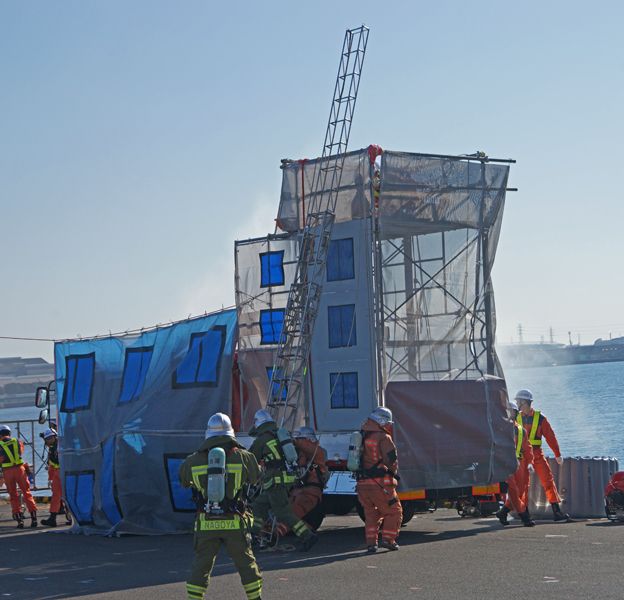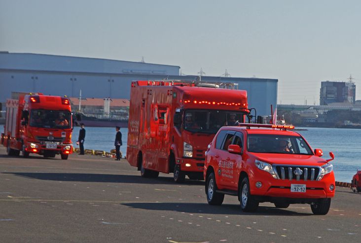 おはようございます今日の名古屋は 晴れています 最高温度10度見込みです一昨日22時に自宅を出まして 和歌山県串本町田原の 海霧を目的で出発 到着して2時間仮眠 海霧は出ませんでしたその後虫食い岩 一枚岩 無量寺 潮岬芝焼きを 見て帰宅途中降雪で 通行止めに追われ 必死で帰宅でした昨日の続き 名古屋市消防出初式 2をアップいたしますパレード 入場行進も終わり 名古屋市保有の 消防関係の 車のパレードです 火災現場は 近寄れない まじかに 見れました特殊車 ハイパーレスキュー隊 梯子車 名古屋市内も高層 ビル群が各区に 樹立 このような車も 続いて 使用方法は判りませんが消防艇も 名古屋港に係留されて いるのでしょうか 3隻 でしたヘリコブターも 三機 飛来しました 救急車 今回は5台が パレードしました 名古屋市内 42台 保有しています 訓練開始 東海地方は30年以内に マグネチュード 8 以上の地震災害が発生すると発表されています 災害救助の 生々しい訓練がありました 負傷者の 救助です搬送 救急隊員によりまして 災害者を 載せる現場光景準備 ハイパーレスキュー隊員が 車で現場到着 服装を 着衣してる様子 ですはしご車 現場にはしご車が 到着 名古屋市内に22台 保有しています火災発生 このような形で 点火されました空から ヘリコプターが飛来して 現場を空から 見て 現場状況の把握 救助ですドッキング はしご車 とヘリコプターの遭遇です 連携訓練です