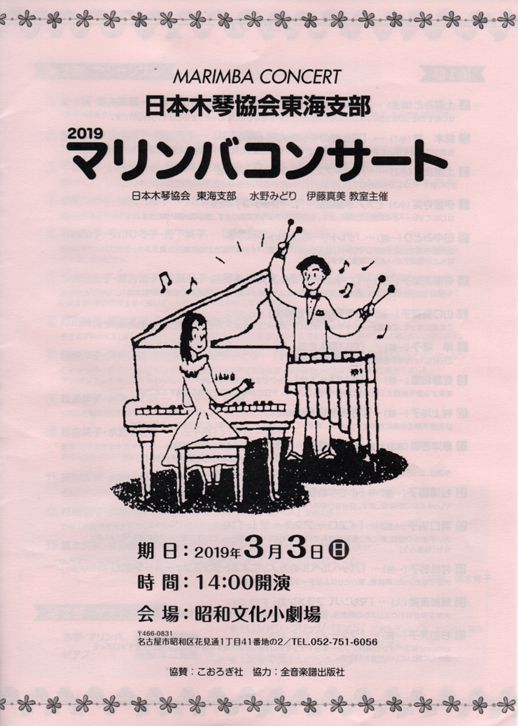 おはようございます今日の名古屋は晴れています最高温度14度見込です昨日は趣味の会の定例会でした今日は先日 鑑賞しました マリンバ演奏会をアップいたしますプログラム トンカツはパソコンから 昭和文化小劇場の スケジュール表から知り 長男と行きました 教室の発表会とは知りませんでした会場光景 300人ほど入る広さ 新しい施設ですので 音響は良いです 壇上に マリンバが置かれていました 踏み台があり 何かな と思いました子供さん 習って見えるのですね 一生懸命 拍手も 大きかったです親子で 微笑ましいですね真剣に 左側が先生でしょうか 音の響き方が 良かったです3人 偶然でしたが 写真仲間の方が 出場でした木琴 第3部で 素晴らしい方の演奏でした 一曲演奏されましてから マリンバと 木琴の違いの話がありました アメリカ製で 木も千年経過した 逸材 との話 他丁寧に 感謝です試 短い曲でしたが 演奏して下さいました やはり音域 音質がかなり違いました素晴らしかったです