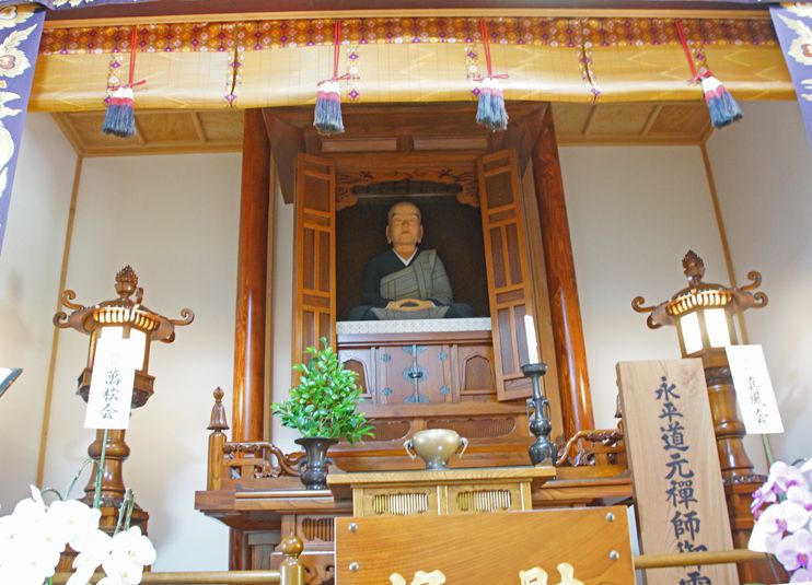 おはようございます今日の名古屋曇っております 最高温度30度 に見込です昨日は午前病院 入院オペの結果を聞きに主治医から 悪性では無いとの言葉 継続観察と皆様から温かい言葉ありがとうございました可睡斎 広大な境内 写真何処でも OK凄く開放された寺院 内心 ビックリしました事務所の方から 何処でも 何時でも OKと嬉しくなりました 高祖廟 永平道元禅師御霊道元禅師の座像開山堂内に 従一位侯爵 久我通久侯 染筆大黒天堂 地蔵庭 風鈴が多数 飾ってありました 庭の風情と ミスマッチでした言葉 寺院の言葉 何時も頷くばかりですカンカン石 神仏に願を掛けるとき この石を叩いて 鳴らしてから 祈ると願いが必ずかなうと 弘法大師が教えたと 言われています天狗像 愛着ある 顔ですね