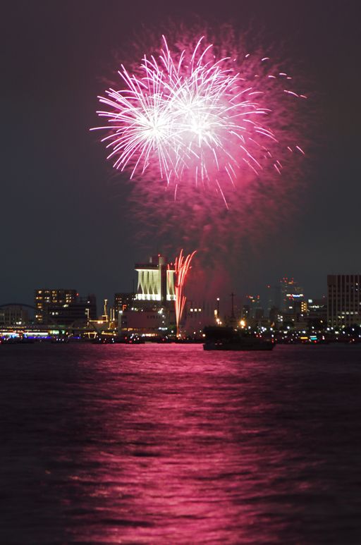 おはようございます今日の名古屋 晴れて 最高温度36度の予報です昨日は 飛騨小坂の瀧巡る 厳立公園の瀧濁河温泉周辺の瀧 をマイナスイオン シッカリ吸い込んできました先日開催されました 名古屋港花火大会をアップいたします花火にとりましては 最悪の気象条件となりました風が無くて 煙幕が消えない 更に雲が無茶苦茶低く殆どの打ち上げが 雲の上となり 下からは見えなかった状態でした海面が 花火の色に 染まりました 撮影場所は 名古屋港の対岸 2km位離れています低い 対岸の建物を 大きく取り入れ 花火を アップに しました笑ってるように みえました 蟹のように見えましたこの種の花火 結構打ちあがりました綺麗 紫色は今回 珍しかったですオーソドックスな 花火 花のよう 中心部が抜け落ちて 8月の花 ヒマワリ に似ていました続いて 次々に打ち上げられて タンポポの胞子 のようにも 一部見受けられました先ずらしい スターマインの白色でした