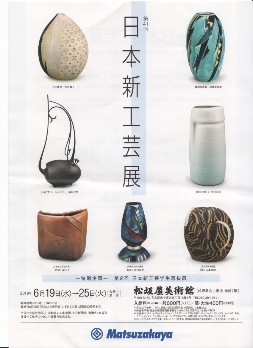 おはようございます今日の名古屋は 曇りです 最高温度27度見込です昨日は午前 料理教室 午後からは南山大学で開催されています 愛知セミナーに慰安婦問題の現実 大村崑さんの講演を 聞きました今日は先日 鑑賞しました 第41回日本新工芸展を アップいたしますパンフレット 入館者に配布されていました花蕾想 寺池静人氏青釉風透壺 加藤幸兵衛氏地に育つーふたたびー 中村武郎氏撓屈「涘Ⅲ」 待田和宏氏日本新工芸会員賞希望 柴田 正氏東京都知事賞 種 山本 幸嗣氏内閣総理大臣賞 蒼流 太田 吉亮氏アップは パンフレット 記載されている分 だけですが全体を 通じて 竹製 織物 も立派な作品 ばかりでした