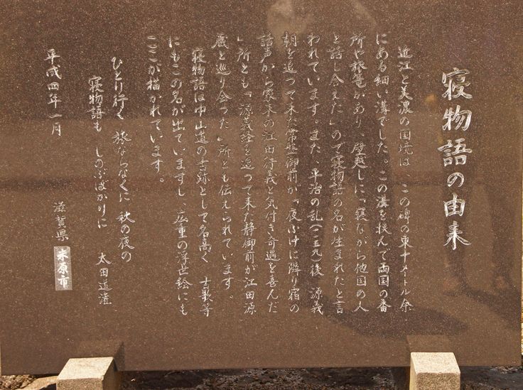 おはようございます今日の名古屋は晴れ 最高温度 37度見込みです岐阜県関ケ原町をドライブしていまして 遭遇しました史蹟 寝物語の里 常盤御前の墓をアップいたします由来碑 近江の国 美濃国 の境となり 今では滋賀県 岐阜県の 県境になっています石碑 立派に作られています岐阜県側の石碑です 今須村 となっていますね滋賀県側の碑です 県境 この溝が 両国を隔てているのです 7年くらい前にも ここに来ました時 夕刻 県は異なっても 近隣 古老の主婦が 椅子に座って 夕涼みをして見えました案内票 細い道を入っていきます説明版 綺麗な女性は 妾になったり 夫が戦場で 無くなりますと 敵側でも 妾になったのですね芭蕉句碑芭蕉句碑芭蕉句碑御供の墓常盤御前の墓 地元の方でしょうが 綺麗でした