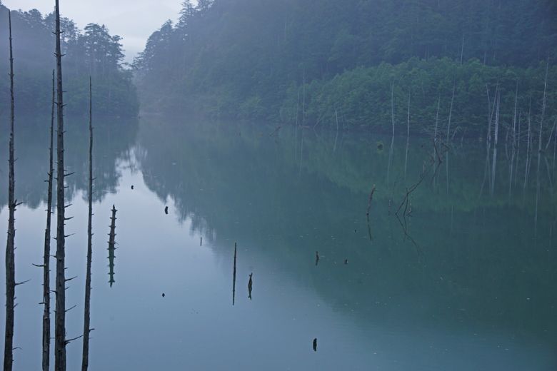 おはようございます今日の名古屋晴れ 雷の予報も 36度見込みです先日訪れました 木曽御岳山 自然湖をアップいたします名古屋を前日の21時にスタートして 途中道の駅に仮泊 4時前に到着して 日の出を待っていました枯れ木 自然湖は 昭和59年(1984年)の地震で王滝川が 土砂で堰き止められて 出来た天然湖 枯れ木が 多く目立ちます看板 ダムの放流がありますと 急激に水かさが 上がります 注意看板です朝もやの中 霞んでいました枯れ木が 凄いですね上高地の大正池よりも 多いかなと 思います少し明るくなってきました 朝もや 凄いです変化のある枯れ木でした太い枯れ木もあり 撮ってみました枯れ木の頭は 槍の様に みえました水の色が素晴らしいですね
