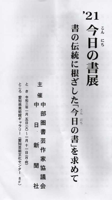 おはようございます今日の名古屋は晴れ 最高温度14度見込みです大寒波の後の ホットする日に なりそうです新年早々 書道展が開催されていましたので鑑賞に出かけました アップいたしますパンフ 受付で貰いました 書典社 東海書道芸術院 以文会 玄玄書作院 4団体主催です会場光景作品 石原氏無 渡邉氏龍光 布目氏光照 丹下氏象 大口氏竹 額田氏作品 水野氏禍災を生きる 平松氏 92歳と聞きました宇 鈴置氏餐 堀口氏会場には 種々 先生方の作品が ありました