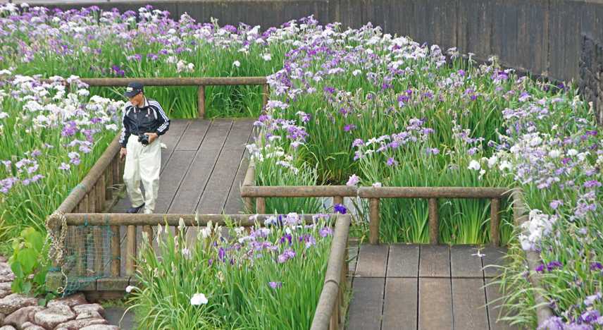 おはようございます今日の名古屋は曇り 最高温度は29度見込みです水郷地域で かなり低い地域です昨年訪れた時は 早く 今年は遅かった状態でしたアップいたしますこのようにシッカリした 木道が作られています駐車場から2分位も 便利ですねシッカリと 咲き誇っていましたでも実態は このような状態の場所 多かったです摘花はゼロの状態ですから 惨めでも ありました水滴のついた 状態 でも一枚目の方が 霧吹きでシッカリ 努力されていました白色の花弁を したから 紫の前ボケ を入れてみました花びらが 花菖蒲らしくない 太めでした霧吹きで 水滴がある状態の花が あり パチリしました見学に見える近所の方 散歩の傍ら 訪れて見えました階段から 先は 入れません三連の花 今日咲いたのでしょうか滝も作られて 綺麗でした ここは入れませんでした紫 花菖蒲らしいですね