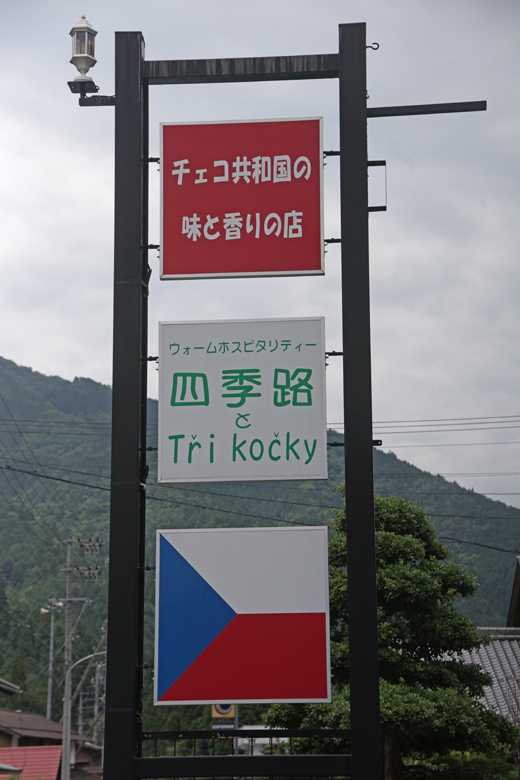 おはようございます今日の名古屋は曇り時々晴 今は晴れています最高温度は29度見込みです3年ぶりに 思い立って 名古屋から 60km以上離れている 関市板取のチェコ料理 四季路に向かいました地道で行きましたので 約2時間余のドライブでしたアップいたします標識 新しくなった感じでした 店内入りママと話 昨年 店内改装した 事 40周年記念で案内看板 駐車場に 掲げられていました入口の装飾です 駐車場に面して 装飾 鉢植えが並んでいました店内 部屋の形は同じですが 椅子 テーブル 他 一新していましたカウンター コロナ対策しながら 色々と飾ってありました ママは大の チェコファンで 毎年冬に 1か月ほど 現地に飛んで 食材仕入れ 友好活動されていますメニュー 手書きで出来ていました 注文は ロクシェセット 写真仲間は クレティーローラーセット でした スープ 料理の説明は出来ないですが 美味しかったですロクシェセット です ワンプレートで 満腹にはならないと 思いましたが 食後 もう食べれない 状態でしたクレティーローラーセット 卵まきでは 在りません 5年前 トンカツがポルトガルに行きます 機内で一緒になりママはチェコへ 乗り継ぎで別れましたその時 大体の位置を聞いていましたから 訪ねたのですママも覚えてくれて3年ぶり チェコにトンカツ1度行っていましたから 懐かしんで 話が弾みました
