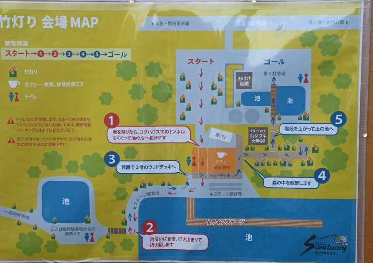 おはようございます今日の名古屋は晴れ 最高温度は30度見込みです魚の供養から 始まった 竹灯り お彼岸の時開催され 家族で出かけましたアップいたします竹灯り 会場マップ 家を出るときは詳しく知らず どのような行事も ハッキリ 掴んでいませんでした 大きな駐車場も4か所準備されていました通路 駐車場からの通路 このように竹筒が無数に 並べられていました 若い方が火を灯して 見えました アルバイトかなと思っていました 従業員と聞きまして ビックリしましたステージ 大きな池にセット されていました ペルーから招いて 4人でした 多少日本語OKでした 二日後には 鹿児島でステージが あるとも社長あいさつ 10分位でした 本業は土建屋さんで 生まれ育って この土地に 17年前に 広大な土地の中にある 池(数面)で 釣り堀を開業 儲かってない会社で 給料は一度も 貰っていない その反対給付で このような竹灯りを 開催 社会還元で 無料で と 話がありました開演 楽しい楽器演奏 歌を交えて ありました 幻想的な世界でした もう14回目でした 社長の挨拶で 私が生きてる 会社が倒産してない が条件で 来年度も 開催しますと竹灯り 色々な形が意識して 作られていました 火は料理用の 小さな丸い 蝋燭です彼岸花が 時期に合わせて 束にして置かれていました一つの光は 弱いですが 素晴らしい光景でした撮影は三脚 マニアル 絞り 8~13 1/10が多かったです蝋燭は燃え切ってしまいますと 従業員の方が 付け替えていました 綺麗ですね上から覗いてみました 素晴らしい 音楽と 光の祭典 来年も参加したいなと思いました 70km以上が ネックですが