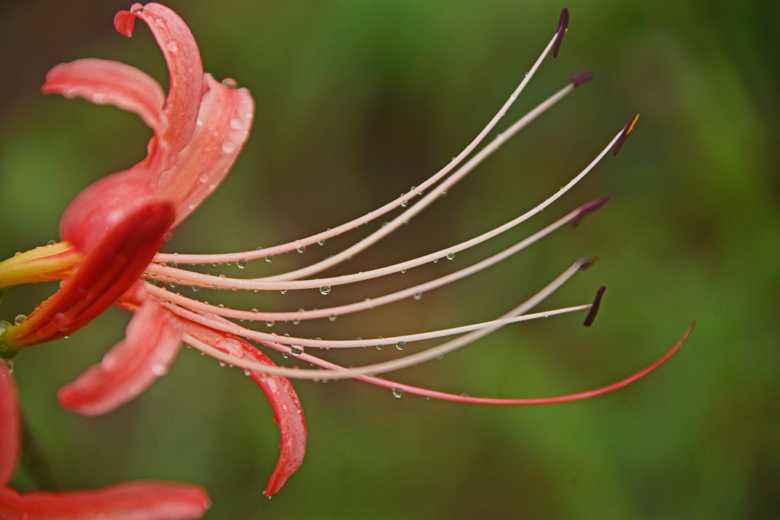 おはようございますお彼岸過ぎないと 咲かない 曼殊沙華(彼岸花)ピンクが咲いてると 聞きまして早速昨日 家内と出かけました一部では終わっている状況にビックリしましたアップいたしますひげ部分をアップしました バックを赤でピンクの花蕾です 2日後には 咲き見られます黄色ピンク優雅な一輪凛と 明日には咲くのでしょうね見学者 雨予報で平日 少なかったです水滴 雨が降りだしました カッパ着て 待っていましたが 大降りにならず 小さい水滴でした水滴一輪 今年初めての彼岸花 やはり撮りにくかったです 見学道と花の距離が 有りまして