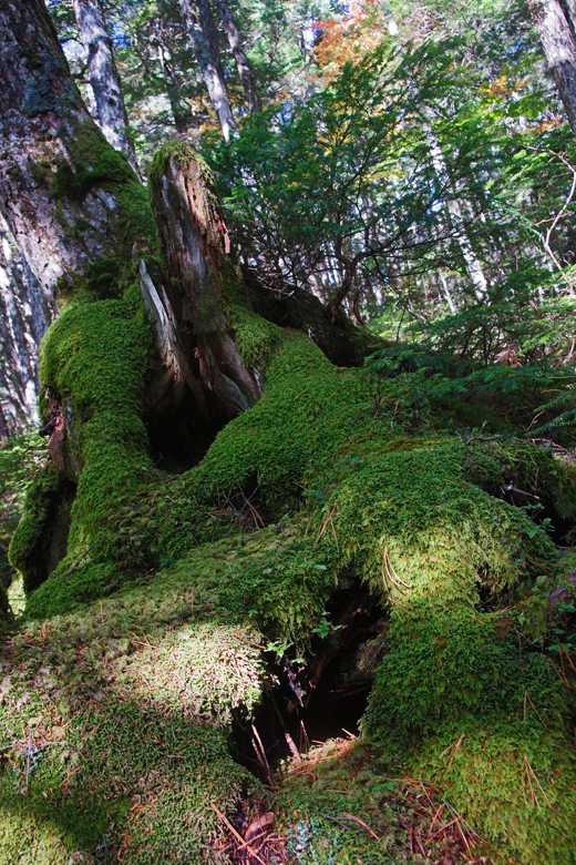 おはようございます今日の名古屋は晴れ 最高温度は28度見込みです一昨日 白駒の池をアップいたしましたら 「まんまんでーさん」が苔に詳しく 日本の苔百景 にランクされている とのコメントトンカツ 苔は殆ど撮らないですが (下手ですから) 手持ちで撮ったのが ありましたので アップいたします苔は保護されて 散歩道からは 入れません覗く程度の 撮り方です でも倒木 枯れ木に近い 木々 苔がビッシリでした平面の一部には このような苔もありましたほんの一部ですが厚い苔に 覆われてとは なっていませんでした結構 日が入っていました岩と木の 根の周りに 生していましたここは ビッシリでした苔も何種類か ある様に 見ました人面のように 穴が見えますね人は全然入らず 自然にまかしてるように 思いました下草も生えてきていますね木も 細いうちに 倒木していますね矢張り湿気が多くて 幹が弱いのでしょうかこの付近は苔の種類かもしれませんが盛り上がっていました