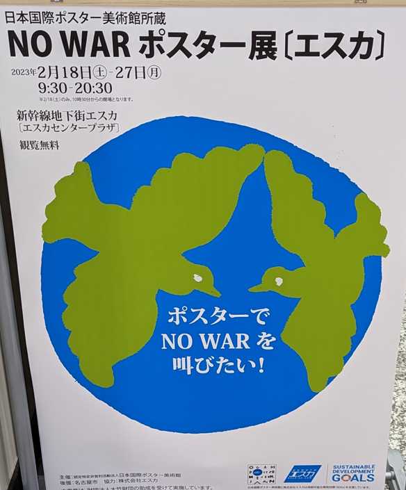 おはようございます3月に入りましたね 春です 直ぐに 彼岸日中が長くなる 月ですね色々な木々の 芽吹きが全国的に 始まりますでも世界各地で 戦争は止んでいませんロシア 中国 イスラエル やりすぎですね名古屋の地下街で ポスター展開催されていると新聞報道 直ぐに出かけました アップいたします世界のどこかで 戦争が起きています日本は戦後80年近く 戦争の無い時代徳川時代を除きましたら 最長ですねポスター展の意義が 書かれています岐阜県大垣市に 本部があるのですね 全国組織ではないかも会場光景です 広くはないですが 効率よく展示されていました鉄兜から コスモス 被らない 戦わないの 気持ですね軍用機から 爆弾 難民が多いです 手で受け止めて破裂させない平和の象徴 鳩ですね沢山のポスターが 張られていました地雷を 子供さんが踏んで犠牲になる 今回のロシアも撤退するとき 大量に敷設 人間性ゼロ 国民かと思ってしまいます展示の半分もアップしていませんが 平和を求めたポスター展 ロシアで100か所以上 同時開催してほしいですね国会議員の長老でロシア側に 応援的発言 自己利益に なるのかな 日本人も色々ですね