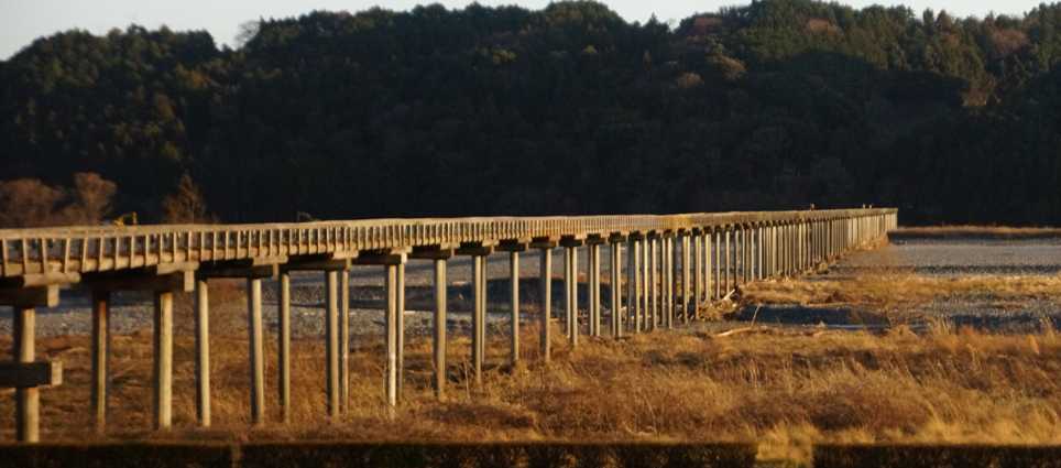 おはようございます周りではしだれ梅が 満開近くになって来ました島田市は通過はしますが 訪れるのは初めてでした 日本一の木造橋 興味津々で 出かけてきましたアップいたします駐車場から歩いて 100m位で 全容を見る事ができます島田市側の渡り口です 100円です 17時までは 橋番がいます それ以降は箱に 入れるのです標識 明治12年と出ていますギネスブックで 平成9年 世界一の長さを誇る木造歩道橋と認定 されました勝海舟の 銅像です勝海舟の活躍ですこの橋は農道として開放されています 1カ月の定期代金 800円ですこのように歩道部分は板張りです 幅 2.4m 全長 897.4m板面をアップで 写してみました橋の下から 撮ってみました 丁度夕暮れです30分位待っていました太陽が沈みかけて 来ました太陽が沈みかける瞬間です 光が良かったです一部分が このように 焼けました