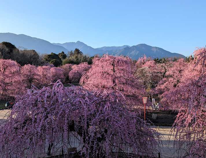 おはようございます桜も各地で 満開を 迎えるようになって来ました あそにも ここにも行きたいのですが シーズンが10日無い位ジレンマですねいなべ農業公園にしだれ梅が満開 アップいたしますこの公園は三方が 丘に囲まれて 見下ろす姿多いです山並みは 養老山脈です 雪が有りますと 最高ですが観梅の方 多いです 入園料金は一人 500円駐車料金は 無料です紅梅は 目立ちますねこのように多数の木々 楽しみました人は多かったです 15時位でしたが満開で 家族連れの方 カップルの方 色々でした紅梅を 透過光で撮ってみました白梅です 周りを ぼかしました同じような撮り方ですこの日は 雲が無い位 晴れ渡っていました丘を登り 見下ろし姿 撮ってみました素晴らしいですね 満開10日位の 観梅の為に 地元の方々 手入れ 感謝です白っぽく撮ってみましたサービスエリア 地元の方々 色々な食べ物を中心に 販売して見えました