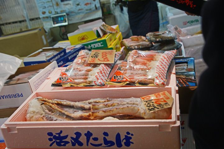市場内でも 蟹が多くの店で 売られていました
