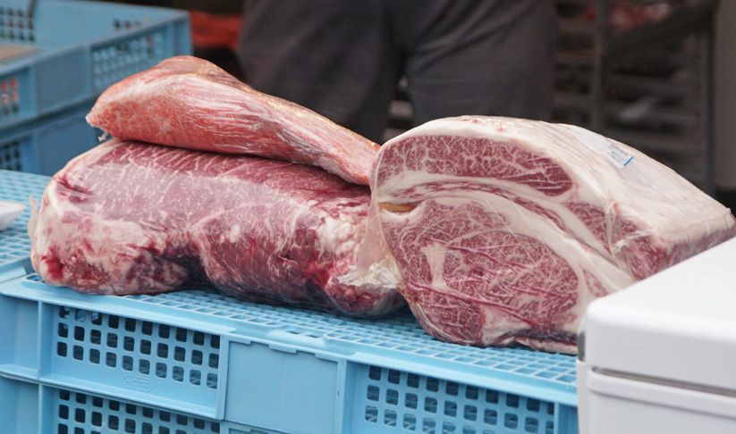 無造作に 肉の塊が 並べられていました