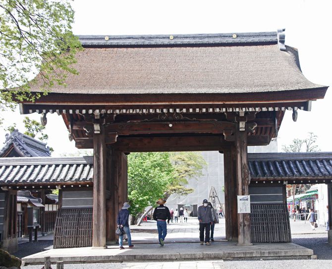 堂宇は正堂が紫宸殿,唐門は建礼門を擬し,特異な寺院建築で有名