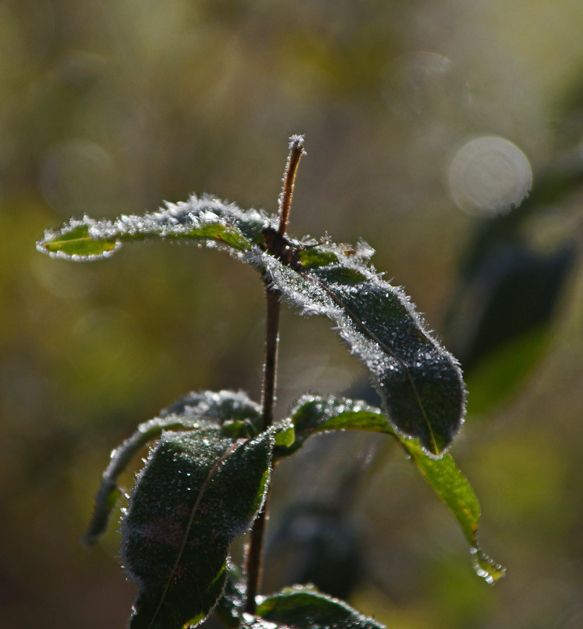 溶け始めていましたが 樹氷と葉との 芸術でした