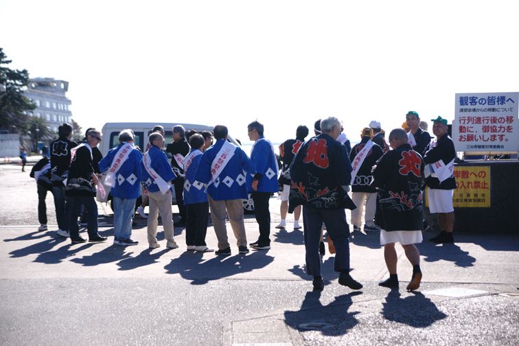 祭り役員の方? 先綱長のタスキをかけて 先頭の