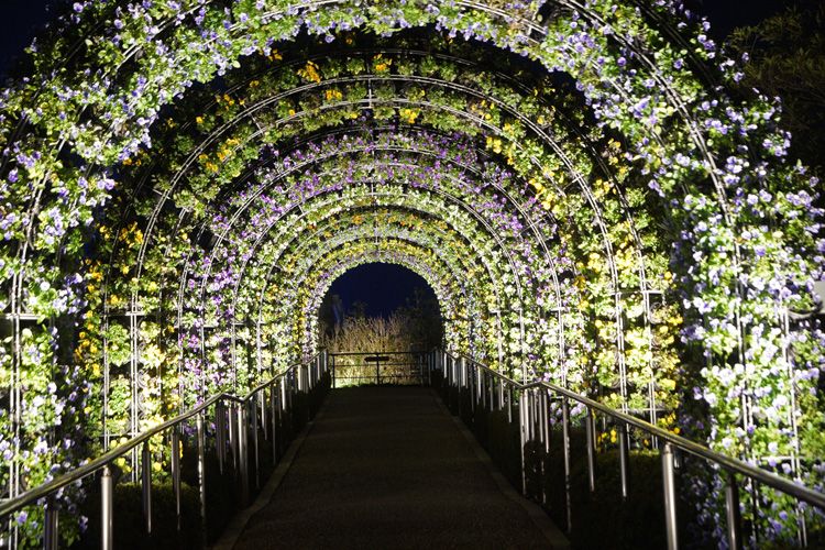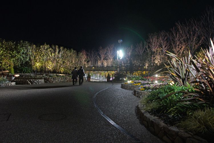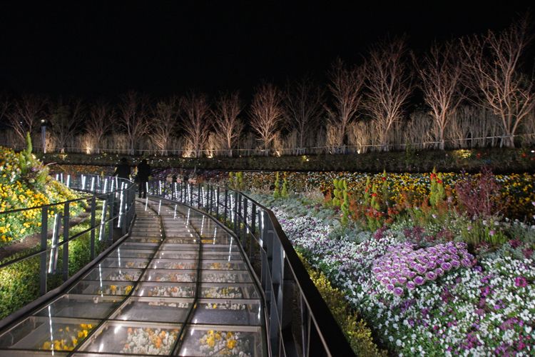 両脇が色々な花で 囲まれ 通路は 強化プラ