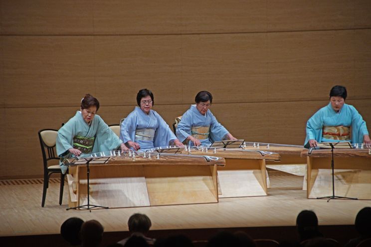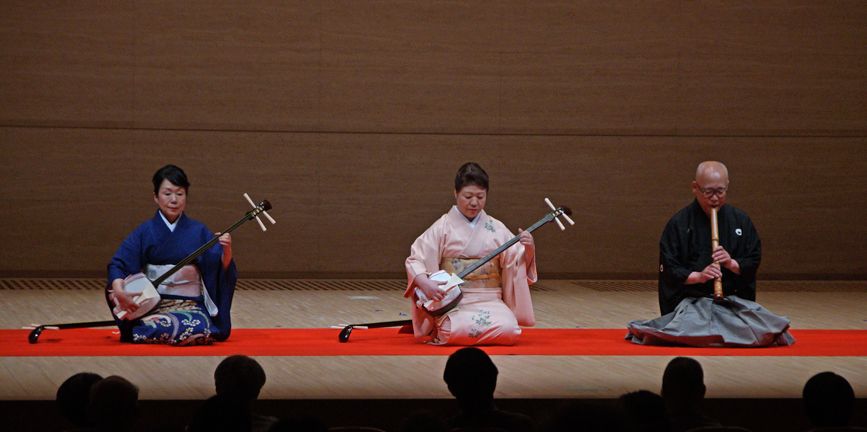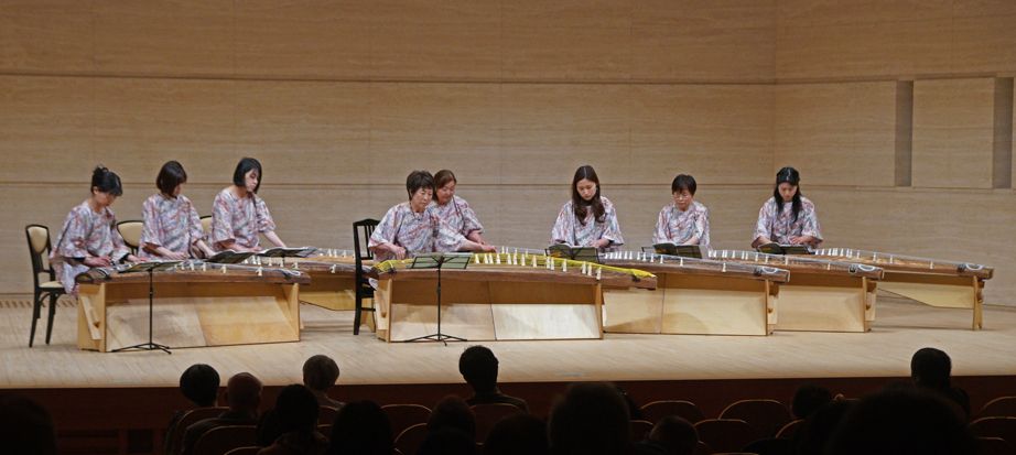 演奏の始まる30分前から 尺八の練習で 多数会場内で