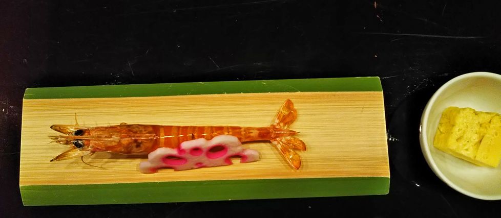 食事会場に入るとき 生きエビを 見せられて