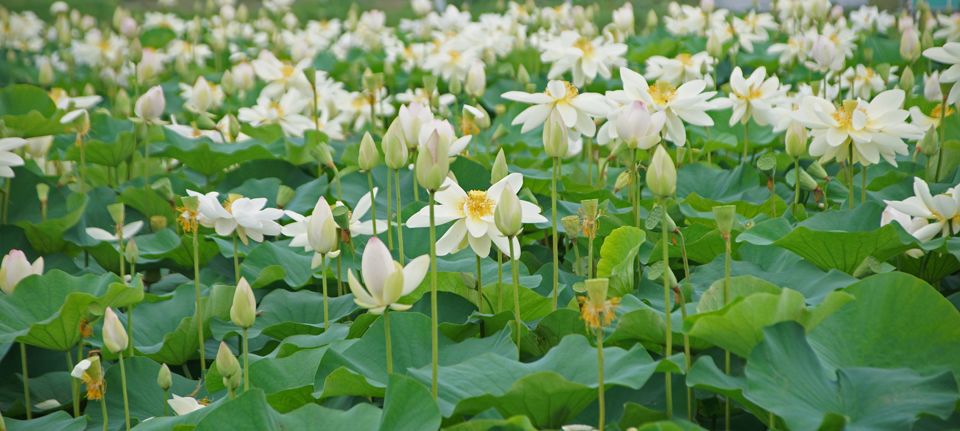 この蓮田は 花が咲き誇り 多くのカメラマンが
