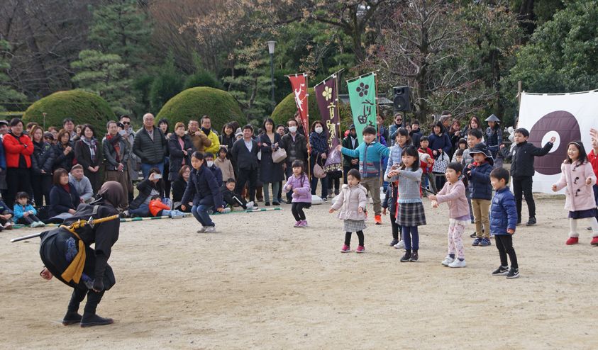 正月2日目 戦国武将隊が 子供さん向けに 演技を