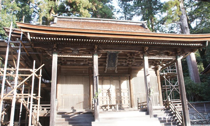 三間二面 角柱 檜皮葺ですが かなり傷んでいました