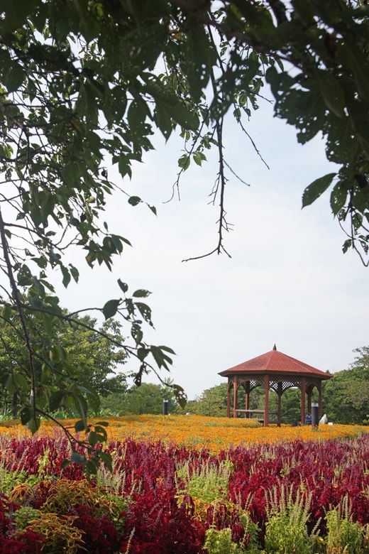 花に囲まれて 東屋です