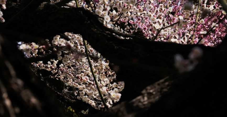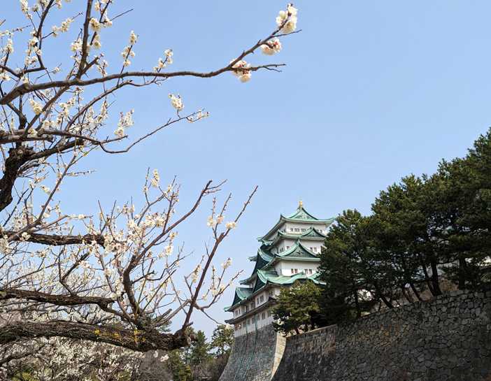 梅の木の上に 天守閣が 鎮座のように 撮ってみました