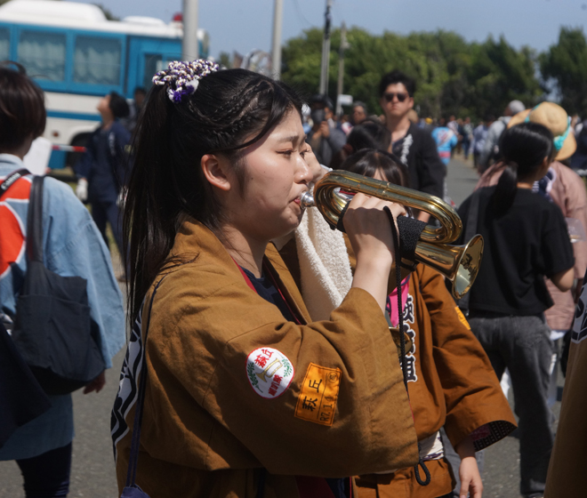 凄く賑やか でした ラッパ 太鼓 歓声 服装